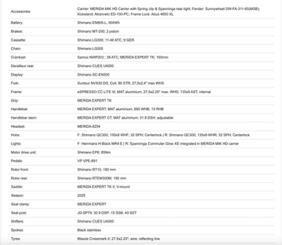 The Merida Espresso CC 400 EQ Electric Hybrid Bike is crafted for city riders and weekend explorers, blending robust performance with essential urban features. Equipped with a powerful Shimano EP6 motor and a 504Wh battery, this bike provides ample power and range for everyday commutes or leisure rides. With Shimano hydraulic disc brakes, front suspension, and Maxxis Crossmark tires, the Espresso CC 400 EQ offers a stable, comfortable ride on various terrains, while integrated lights, fenders, and a rear carrier add versatility for all-season commuting.